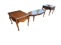 A charming trio featuring a beautiful coffee table paired with two matching side tables. This set brings a soft, timeless elegance to any lounge or reception space; perfect for adding a touch of character and sophistication to your event design.